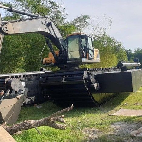 El tren integrado es la piedra angular de su funcionalidad anfibia, fabricado en acero resistente a la corrosión.los pontones proporcionan la flotabilidad esencial requerida para una operación estable en el aguaSus compartimientos sellados garantizan una integridad impermeable completa, mientras que su diseño optimizado contribuye tanto a la flotación como a la propulsión en entornos acuáticos.Esta combinación única de pistas de goma y flotación de pontones crea una plataforma versátil capaz de hacer la transición sin problemas de la tierra al agua, lo que lo convierte en un activo indispensable para el dragado, la construcción de humedales, la restauración del medio ambiente y varias aplicaciones de ingeniería marina.