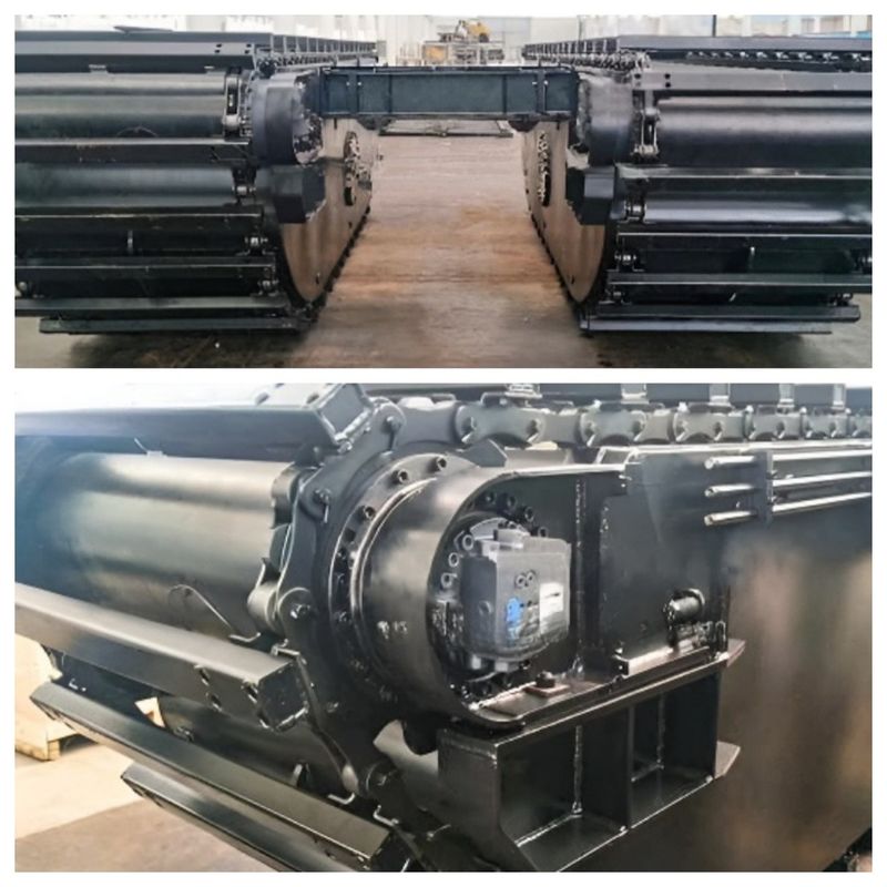 La propulsión se logra a través de cadenas de accionamiento hidráulico de trabajo pesado integradas en los pontones, proporcionando un movimiento confiable y potente tanto en tierra como en agua.La robusta estructura superior de la excavadora se monta perfectamente en esta base anfibiaEsta unidad está construida para resistir a los elementos corrosivos que se encuentran comúnmente en los ambientes acuáticos.con un contenido de aluminio superior a 10%, pero no superior a 50%, garantizando una vida útil más larga y una menor demanda de mantenimiento.